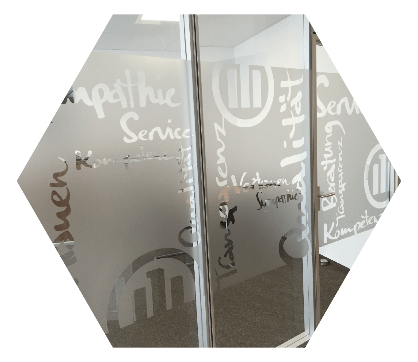 Beschriftungen von Schaufenstern, Türen und Glaselementen mit Glasdekorfolie (Sandstrahleffekt) – Digitaldrucken - Folienplotts