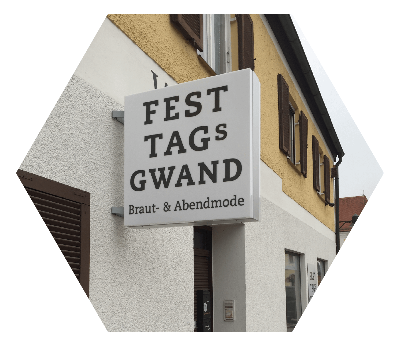 Fassadenbeschriftung mit Spannrahmensystem / Aluverbundtafeln
